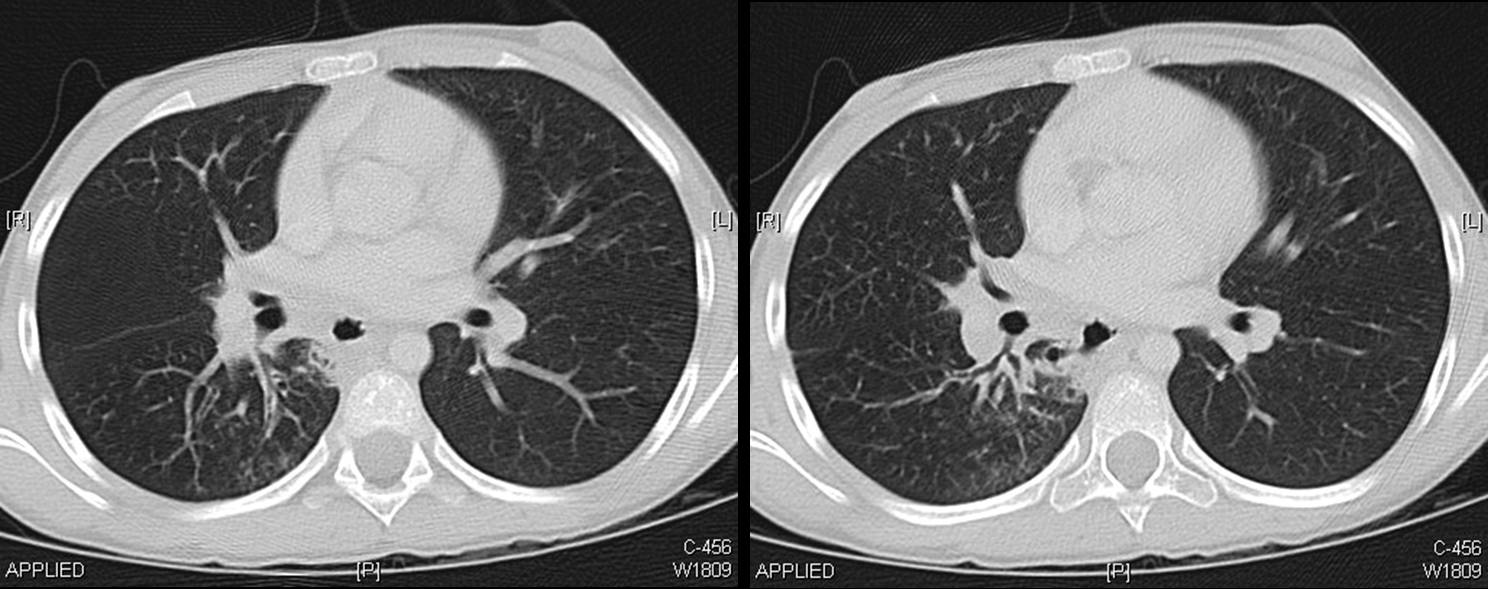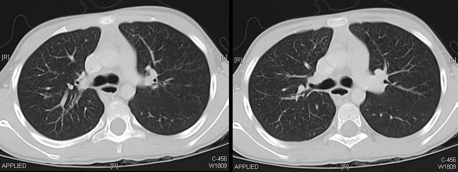 Her screening coagulogram including Prothrombin time (PTT) and INR were within normal limits. Her anti-neutrophil cytoplasmic antibody (ANCA) and anti- glomerular basement membrane (Anti-GBM) were negative. Immunology workup revealed normal level of Complement (C3, C4) and immunoglobulins (IgG, IgA, IgM, and IgE).