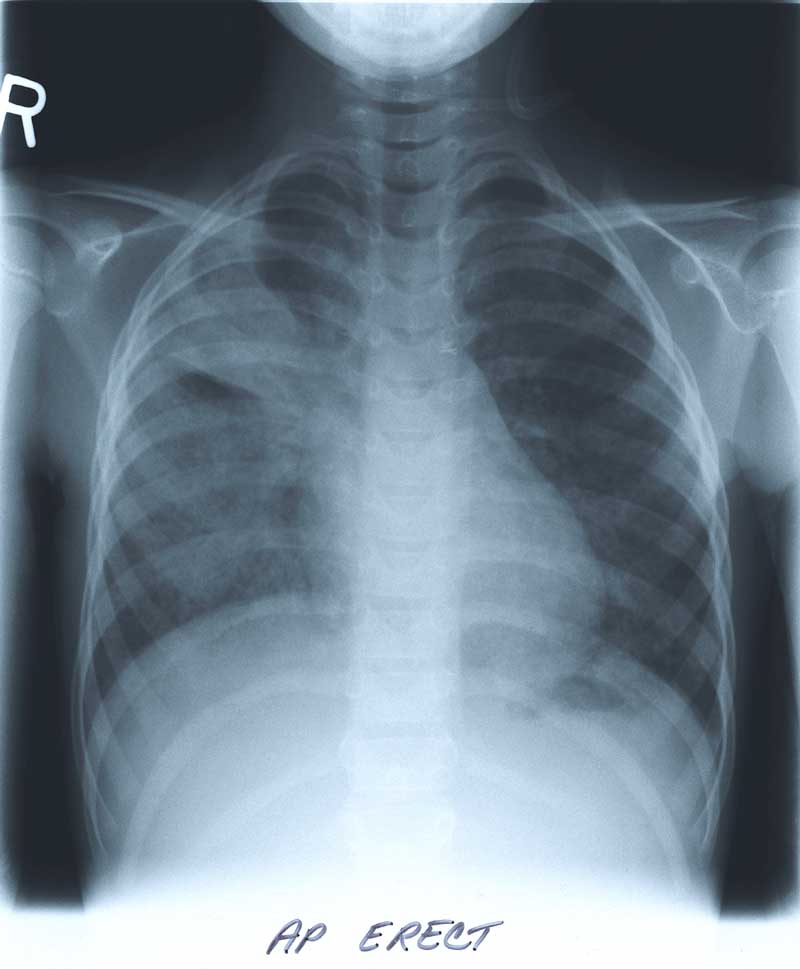 A six and half year old female presented with a five day history of pleuritic chest pain, fever, and cough in April 1998. She had no hemoptysis. There was no history of travel or exposure to sick contacts.