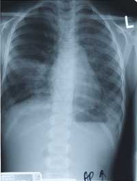 At follow-up, she continued to be hypoxemic on room air. Her cardiac evaluation (echocardiogram and EKG) was normal. The interval chest xray was worse although she only required oxygen at night. Follow-up in October 1998 (6 months after presentation), she was noted to have mild clubbing on examination. Interestingly, her father was also noted to have clubbing but no respiratory symptoms.