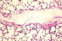 spaces are dilated and occasionally cystic. Small amount of collagen,