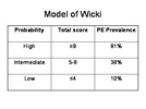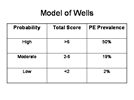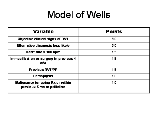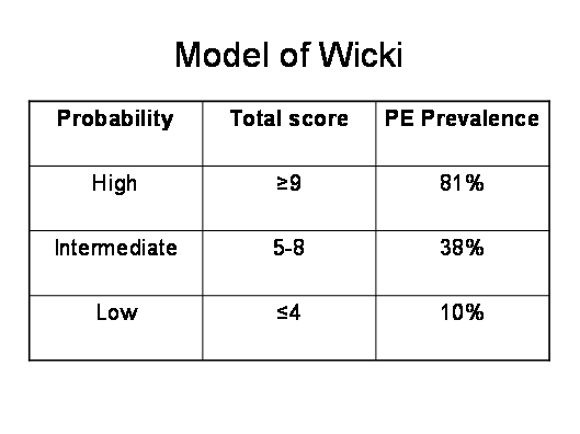 In their model, Wells et al used the medical history and physical examination to divide the patients into high, intermediate, and low clinical probability based on the total score.