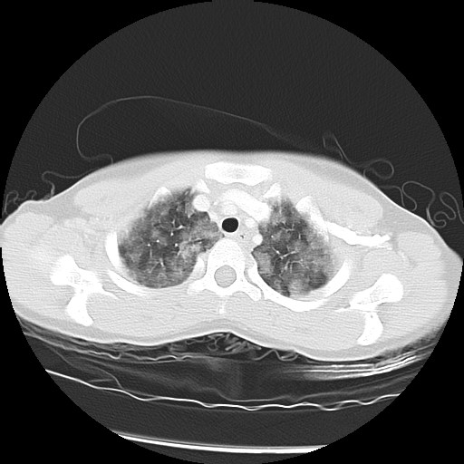 He had induced sputum sent for bacterial and viral cultures in the Emergency Room though these samples were not sufficient for a comprehensive analysis. The bacterial and viral cultures that were negative including for bordetella, mycoplasma, adenovirus, Chlamydia pneumonia and legionella. His urinalysis was negative for hematuria and EKG was normal. He had a mantoux test which was read at 72 hours and was negative. His C3 was 1.09 and C4 0.21. At the time of his admission he had blood work for vasculitis causes; Anti GBM, Anti Rho, anti-RNA, anti La, anti sm, ANA, Rheumatoid Factor, DNase, Anti Smooth muscle antibody, Anti RNP antibody, Anti Ro antibody, anti-cardiolipin antibody and anti-phosphalipid antibody. It took several days for the analysis and final reporting of these tests. The clotting factors, fibrinogen and von Willibrand levels were normal.