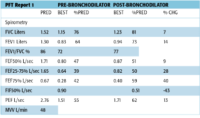 DO YOU HAVE AN INTERPRETATION OF THE PFT'S?